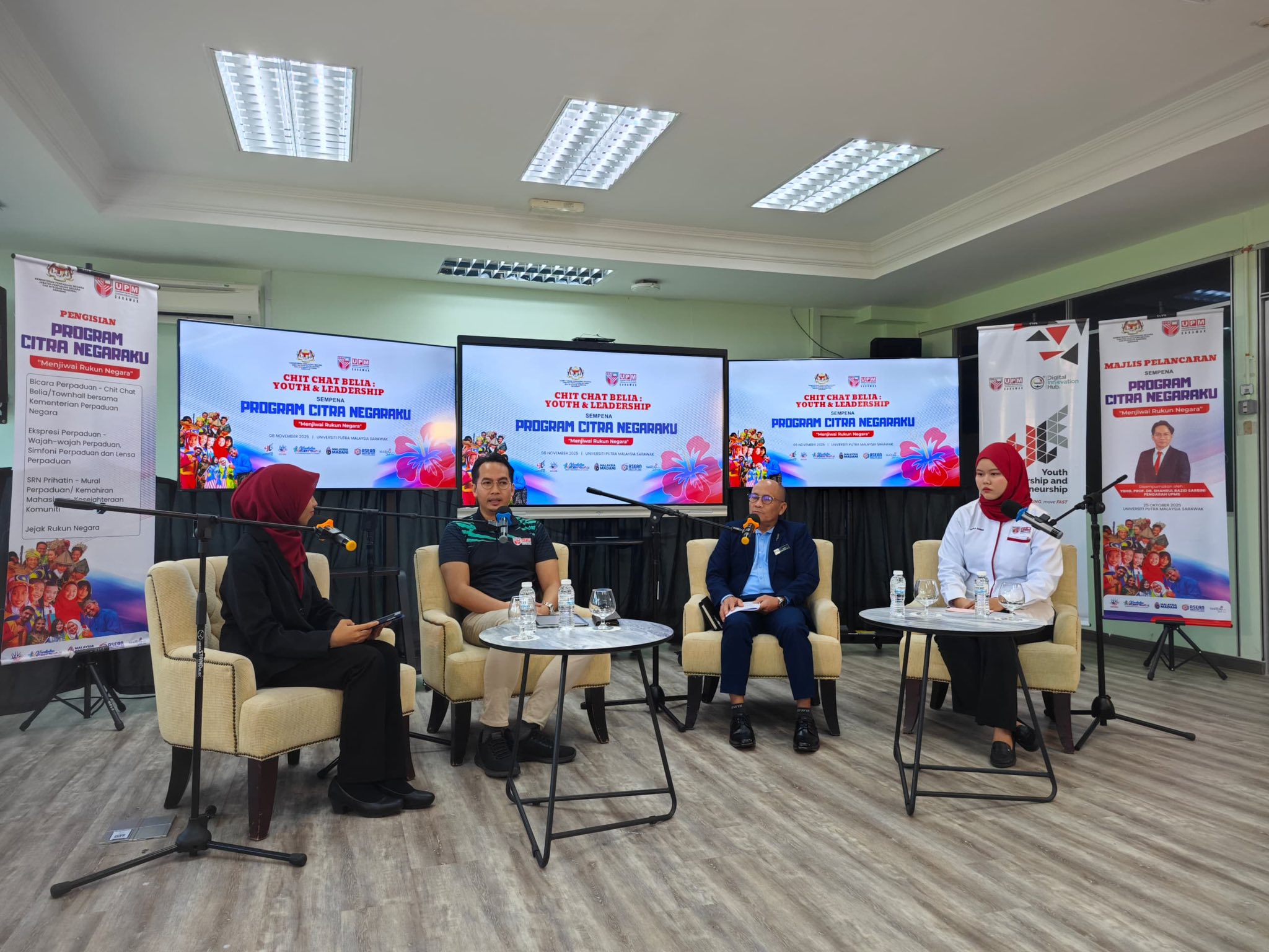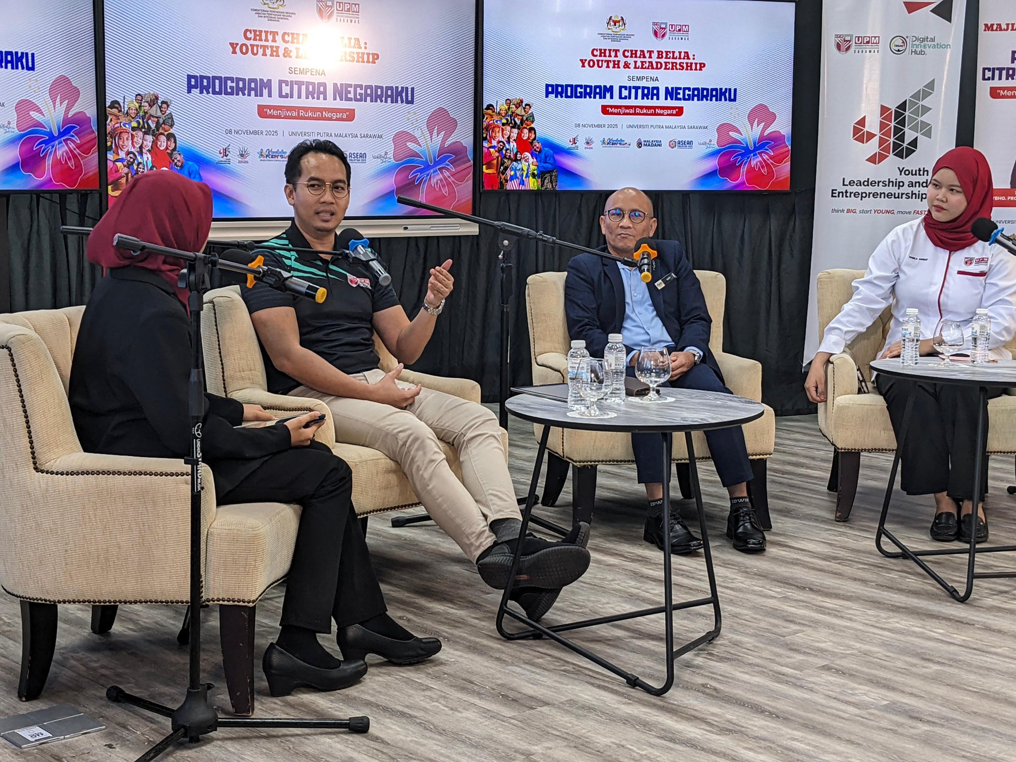 Bintulu - 8 November 2025, program Citra Negaraku “Menjiwai Rukun Negara” – Chit Chat Belia: Youth & Leadership telah diadakan di Putra Smart Classroom, UPMS, menampilkan sesi podcast interaktif yang menghimpunkan golongan muda untuk berbincang tentang perpaduan, kepimpinan, dan nilai kenegaraan.
