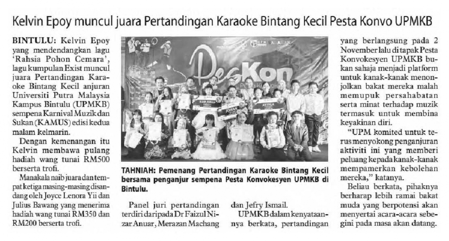 Kelvin Epoy Muncul Juara Pertandingan Karaoke Bintang Kecil Pesta Konvo UPMKB | KONSORTIUM UNIVERSITI UNIVERSITAS BORNEO